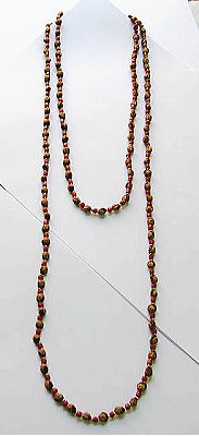 落ちついた珊瑚色のロングタイプのネックレス。。とても長いので、たっぷり2連にしてお使いいただくと、とってもゴージャス!
